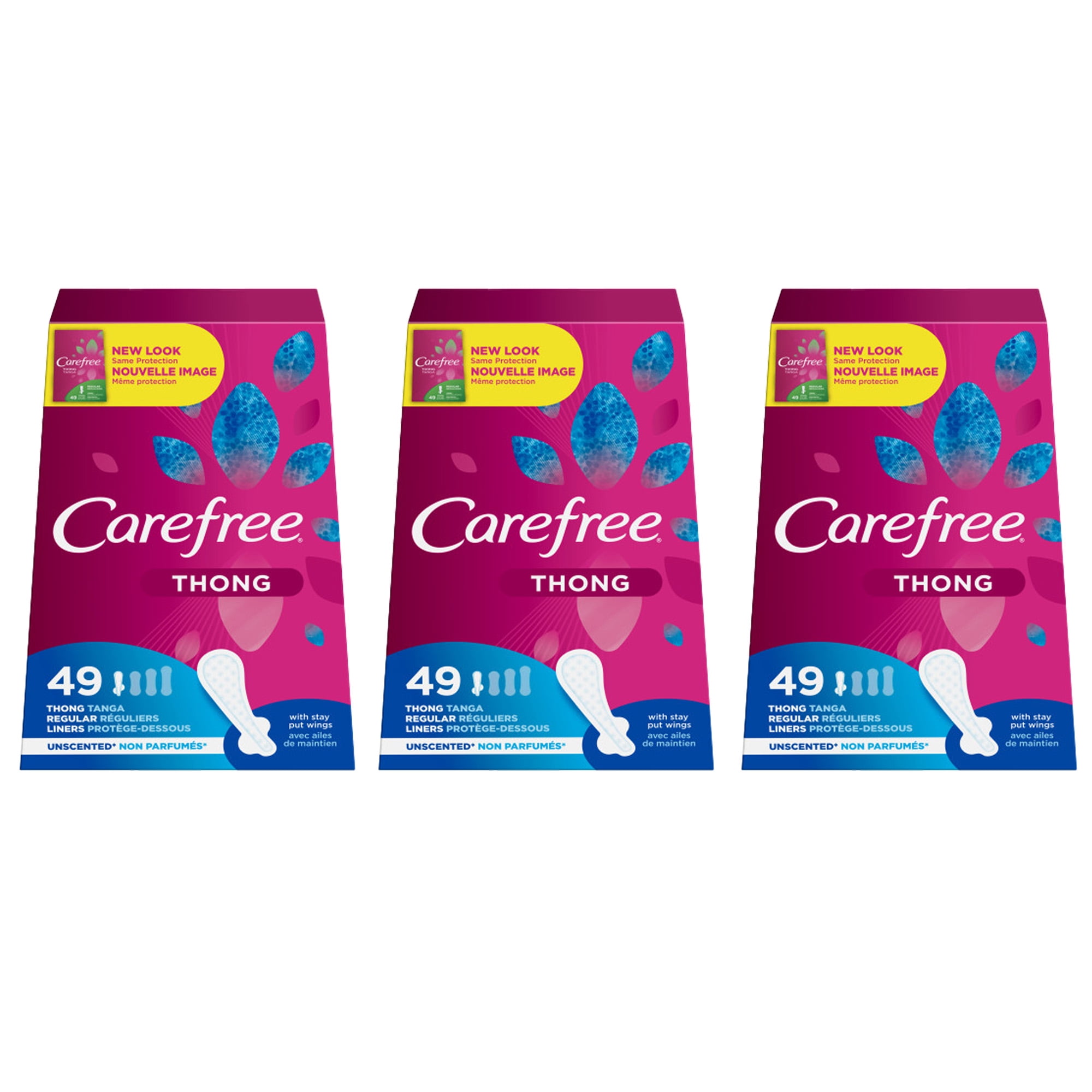 Carefree Thong Pantiliners Regular Unscented 49 Ea Pack Of 3 Walmart Com